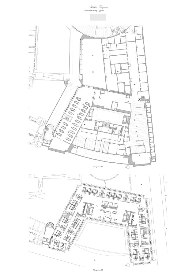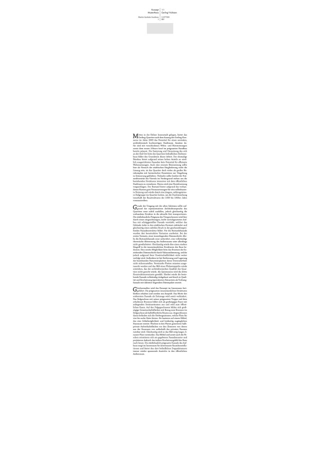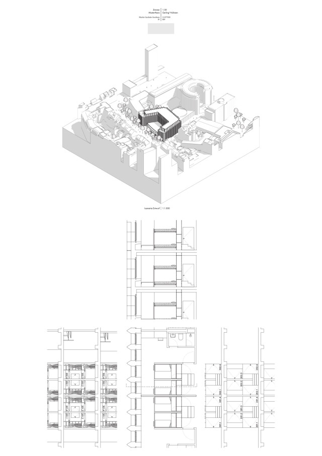 Mitten in der Kölner Innenstadt gelegen, bietet das Gerling-Quartier nach dem Auszug des Gerling-Konzerns im Jahre 2009 das Potential für einen zentralen, architektonisch hochwertigen Stadtraum. Ansätze dafür sind mit verschiedenen Wohn- und Büronutzungen sowie dem neuen 25hours hotel im prägnanten Rundbau bereits präsent. Die Sanierung und Umnutzung des sich an der Süd-Ost Seite des Quartiers befindlichen Hufeisenbaus bildet den Grundstein dieser Arbeit. Der ehemalige Bürobau bietet aufgrund seines hohen Anteils an nördlich ausgerichteten Fassaden kein Potential für effiziente Wohnnutzungen. Auch eine erneute Büronutzung sollte hier als Versuch der städtischen Eingliederung nicht die Lösung sein, ist das Quartier doch vielen als großer Bürokomplex mit hermetischer Koexistenz zur Umgebung in Erinnerung geblieben. Vielmehr sollte hierbei die Nutzerdiversität des Viertels im Vordergrund stehen um die bestehenden Strukturen intensiver mit dem öffentlichen Stadtraum zu verzahnen. Hierzu wird eine Hostelnutzung vorgeschlagen. Der Bestand bietet aufgrund des vorhandenen Rasters gute Voraussetzungen für eine zellenbasierte Nutzung und würde damit eine jüngere, zahlungsärmere Zielgruppe ins Quartier locken, um die Durchmischung innerhalb der Baustrukturen der 1930 bis 1960er Jahre voranzutreiben.