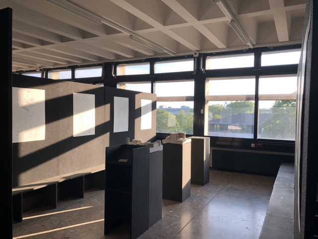Gleichermaßen wird das Konzept im Innenraum fortgeführt. Die prägnanten innenräumlichen Strukturen bleiben erhalten und werden neu bespielt. Das Motiv der entkernten Fassade als Zeitzeuge wird somit verhindert. Das Erdgeschoss mit seiner prägnanten Treppe und dem erhaltenen Brunnen bildet sich als großzügiges Foyer mit anliegenden Seminarräumen aus und wird zum öffentlichen Raum. Auf den Folgegeschossen bilden sich großzügige Gemeinschaftsflächen mit Bezug zum Brunnen im Erdgeschoss als halböffentliche Räume aus. Angeschlossen daran befinden sich die Herbergszimmer, welche Platz für vier bis sechs Gäste bieten. Sie basieren auf einem Möbel, das eine Schlafmöglichkeit und beidseitig zugänglichen Stauraum vereint. Nischen in den Fluren generieren halbprivate Aufenthaltsflächen vor den Zimmern von denen aus der Stauraum von außerhalb des privaten Raumes nutzbar wird. Gleichzeitig wird so das Bild ewig langer, linearer Flure vermieden. Das Möbel und somit auch die Nischen orientieren sich am gegebenen Fassadenraster und projizieren dadurch das äußere Erscheinungsbild des Baus nach Innen. Die städtebaulich prägnante Fassade des Aufbaus sorgt im Innenraum für interessante Raumkonstellationen und bietet den dort befindlichen Doppelzimmern immer wieder spannende Austritte in den öffentlichen Außenraum.